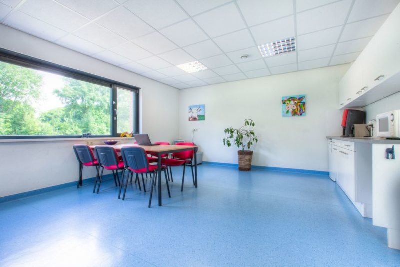 De personeelsruimte wordt gebruikt voor werkbesprekingen of om even rustig te pauzeren.